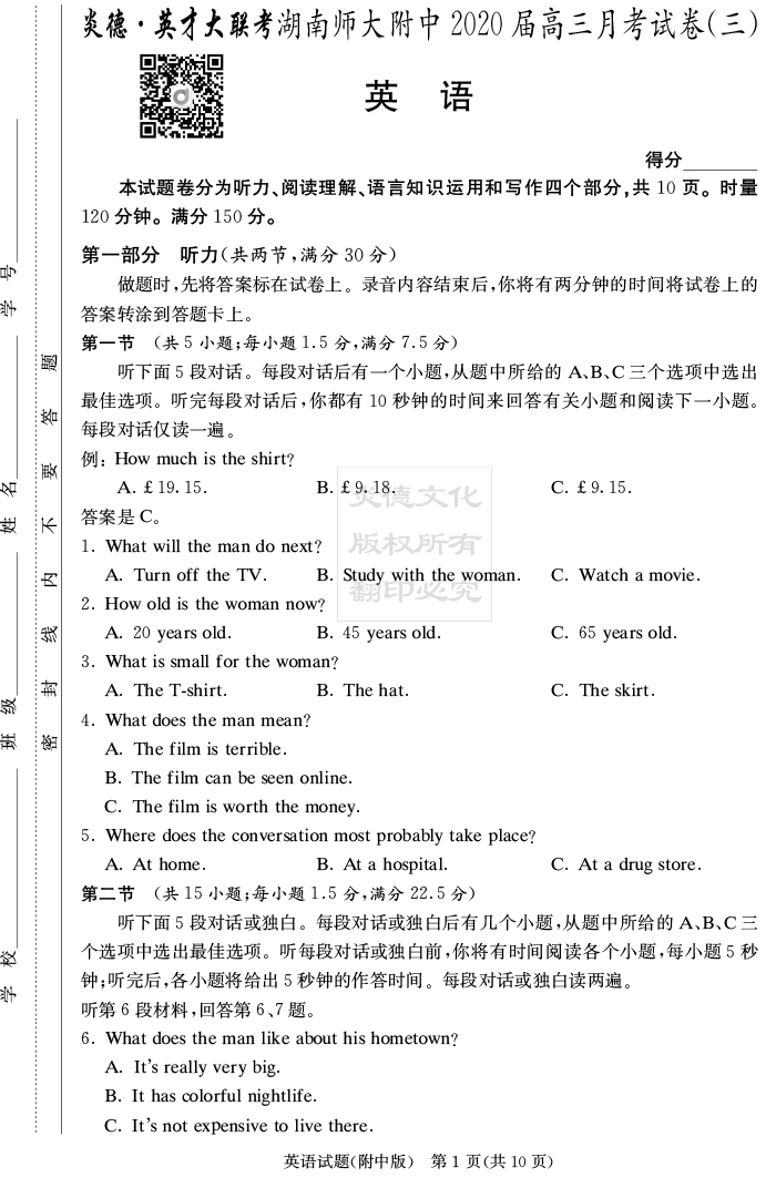 | 資源類別: | 名校月考 | |