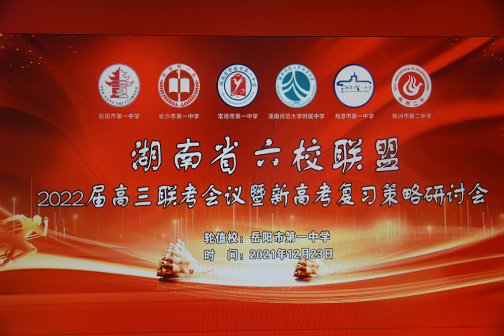 2021年12月23日上午,湖南省六校聯(lián)盟2022屆高三聯(lián)考會(huì)議在岳陽(yáng)市一中召開(kāi),岳陽(yáng)市一中、長(zhǎng)沙市一中、湖南師大附中、株洲市二中、常德市一中、湘潭市一中及湖南炎德文化實(shí)業(yè)有限公司的領(lǐng)導(dǎo)和專(zhuān)家參加。
